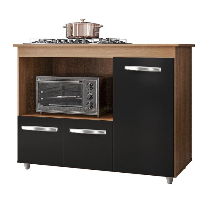 Balcão Gabinete Ana Savana Suporte para Cooktop com 3 Portas - Preto Preto