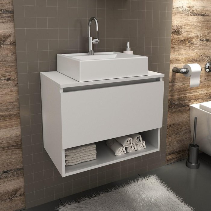 Quando falamos de banheiro pensamos em bem-estar. Pois o banheiro é onde a gente recarrega nossa energia vital, idealiza sonhos, e realiza toda a manutenção necessária para uma saúde física e mental. Com design prático, o móvel entrega ao ambiente toques de modernidade e elegância. Funcional, acondiciona produtos de higiene e beleza, porta escova, papel higiênico, toalhas, artigos de limpeza, entre tantos outros objetos pessoais. Fabricado em MDP. NAO ACOMPANHA CUBA. Especificações - Comprimento: 60 cm - Largura: 38,7 cm - Altura: 46,5 cm - NÃO ACOMPANHA CUBA. - 1 Porta - 1 Nicho - Cor: Branco - As configurações do seu monitor ou dispositivo móvel podem afetar a tonalidade da cor do produto. Conferir na descrição. - Recomendação de Limpeza: Limpar com pano seco para retirar o pó. Não aplicar produtos abrasivos. - Produtos de Enfeite e Eletrônicos Não Estão Inclusos.