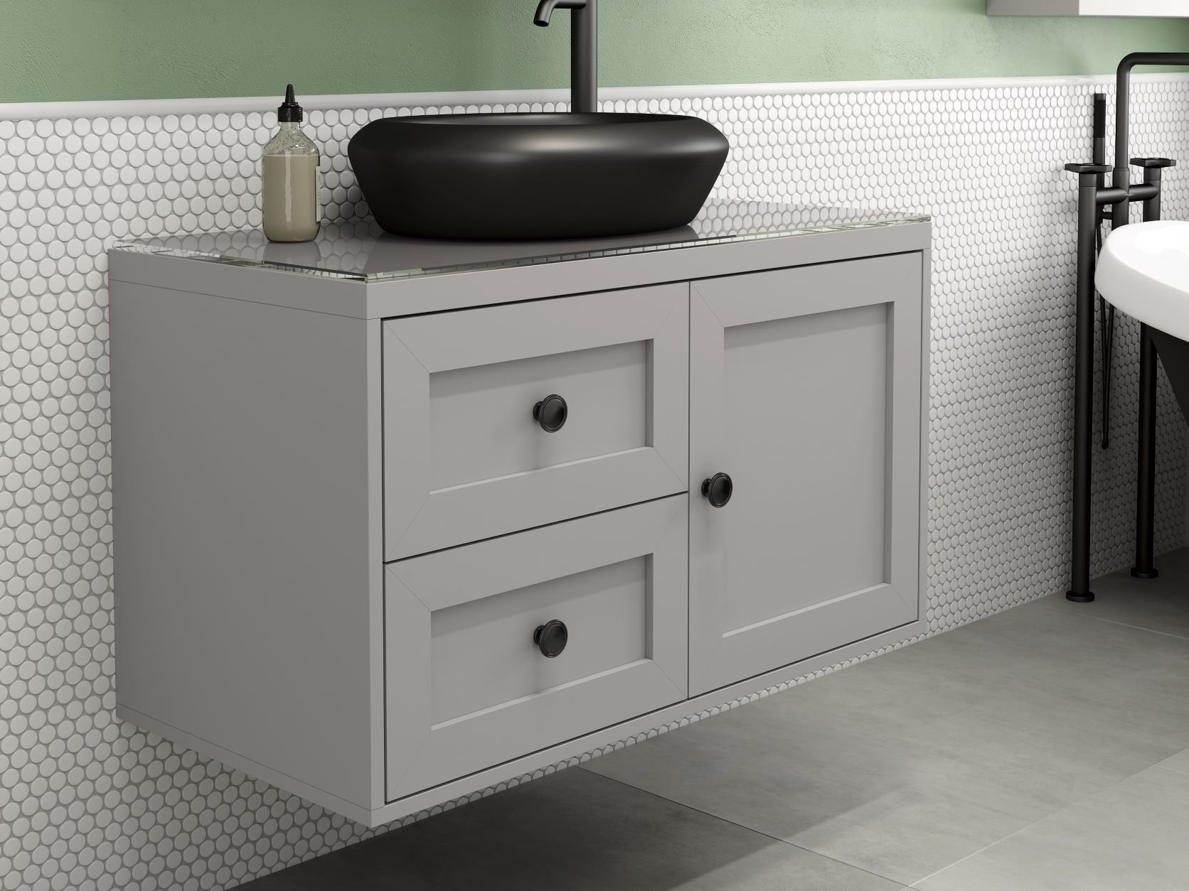 Balcão Gabinete Banheiro Provençal 80 C/ Cuba: Cinza / Preto Cinza Mat.