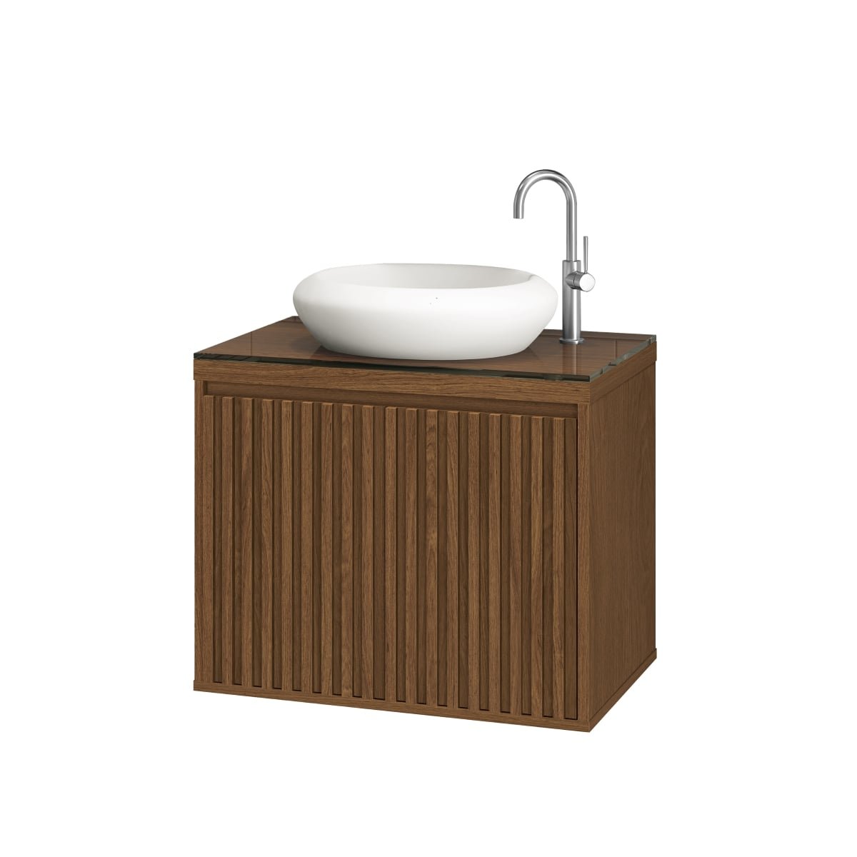 Balcão Gabinete Banheiro Ripado 60 Freijo C/ Cuba Branca