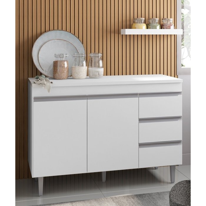Balcão Gabinete Branco para Pia 120mt Andréia sem Tampo Ajl