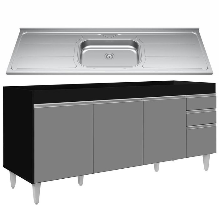 Balcão Gabinete com Pia 180cm Dallas Preto/cinza - Lumil