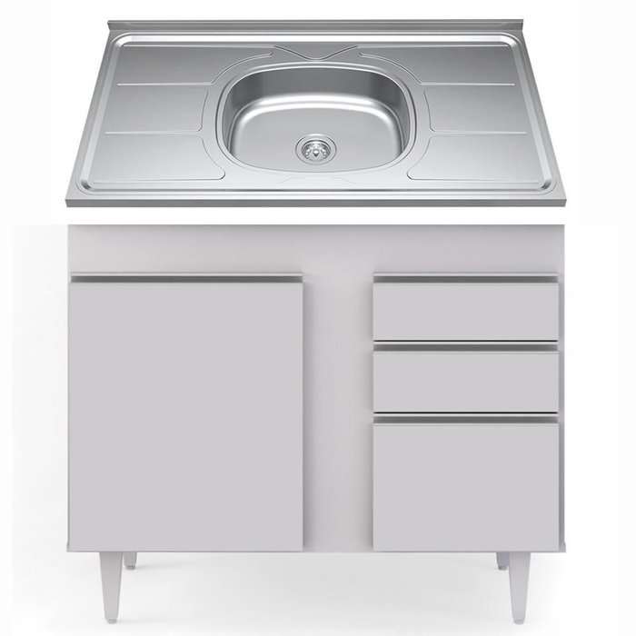 Balcão Gabinete com Pia Inox 100cm 2 Portas 2 Gavetas Luziania Branco - Lumil