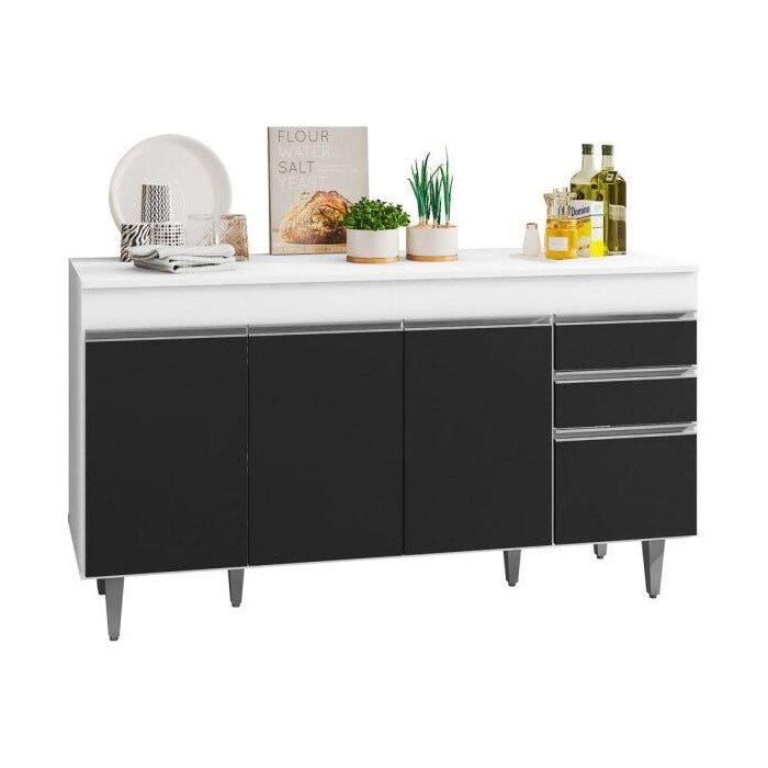 Balcão Gabinete de Pia com Tampo 150cm 4 Portas 2 Gavetas Marrocos Branco/preto - Lumil