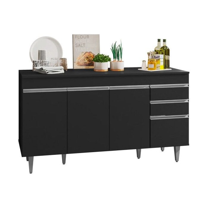 Balcão Gabinete de Pia com Tampo 150cm 4 Portas 2 Gavetas Marrocos Preto - Lumil