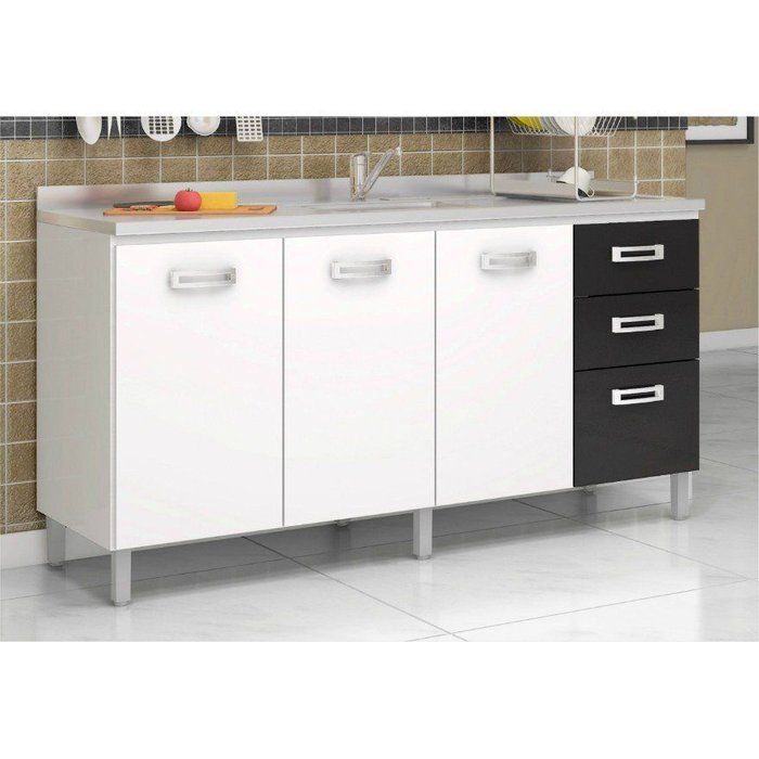 GRANDEO Balcão Para Pia de Cozinha 160 cm é um produto de alta qualidade e design exclusivos, que vai deixar a sua cozinha ainda mais bonita. Possui estrutura feita em madeira MDP e acabamento em pintura UV de alto brilho, é um balcão para pia de cozinha resistente e durável. Possui prateleiras e divisória interna que auxiliam na organização dos utensílios, além de gavetas com corrediças metálicas que deslizam com suavidade, puxadores em poliestireno com pintura cromada e 03 portas com dobradiças metálicas. Confira e leve para sua casa!