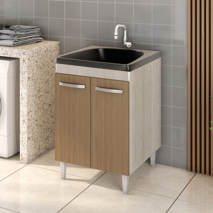 Balcão Gabinete para Lavanderia Tanque com Cuba 0,60x0,60 Vectra Hr Móveis