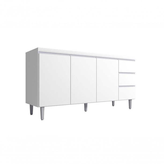 Balcão Gabinete para Pia Andreia com Tampo 160cm 3 Portas 3 Gavetas Branco Branco