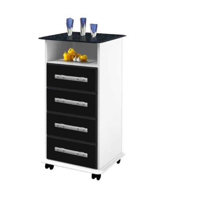 Balcao gaveteiro 04 Gavetas Bra / Preto / Marm com rodizios PASSE BEM