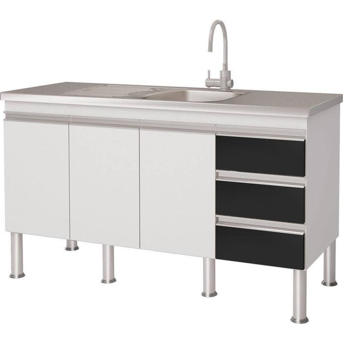 Balcao para cozinha, com 3 portas e 3 gavetas, prateleira interna puxador em perfil alumínio, corrediça telescópica e porta talheres.Gaveta e Porta produzidas com Mdp de 15 mm, Caixa Mdf de 12 mm, fundo Duratree de 2,5 mm.Não acompanha torneira, Pia ou tampo superior.