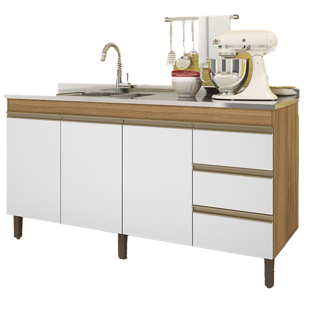 Balcao Karen para Pia 1,59cm 3p 3g Nature Off White Plla Nature Off White PLLA