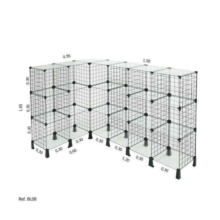 Balcão de Atendimento tipo 'L' Modulado Misto Aramado e Vidro temperado de 4mm na base de cada casulos amanho 1,50 x 1,00 x 0,90 e com 21 casuloss. Ideal para Atendimento ao público e exposição dos mais variados tipos de produtos.