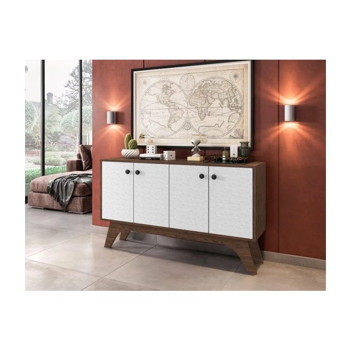 Balcão Livia 1,35m - New Ceval - CASTANHO / PROTECT BRANCO