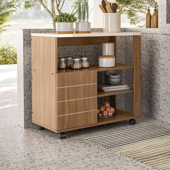 Balcao Mesa Auxiliar Gourmet Cedro Gold Cedro Gold