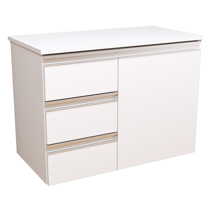 • VERSATILIDADE DE USO: possibilidade de montagem do balcão com gavetas à direita ou à esquerda, deixando a cuba posicionada de forma prática e personalizada para seu espaço.