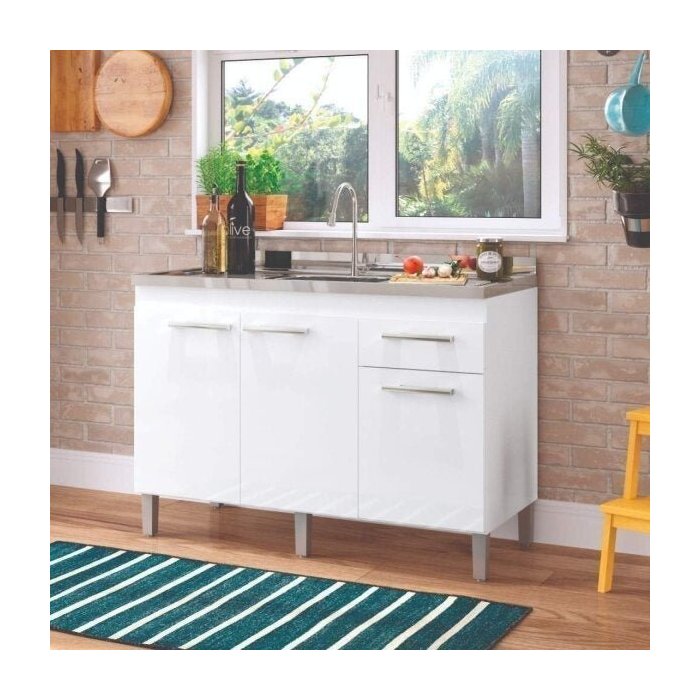Balcão Multiuso de Cozinha 3 Portas 1 Gaveta Joy Decibal Móveis Branco