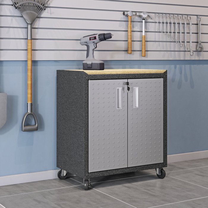 Balcão Multiuso em Aço 2 Portas Pés com Rodizio com Tampo Titanium Itatiaia