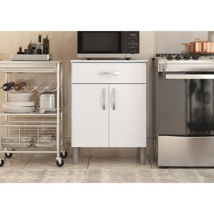Balcão Multiuso Para Microondas 2 Portas 1 Gaveta Easy Demóbile Branco