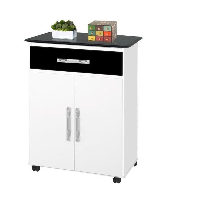 Balcao Napo. Branco preto Marmorizado 01 gaveta + 02 portas PASSE BEM