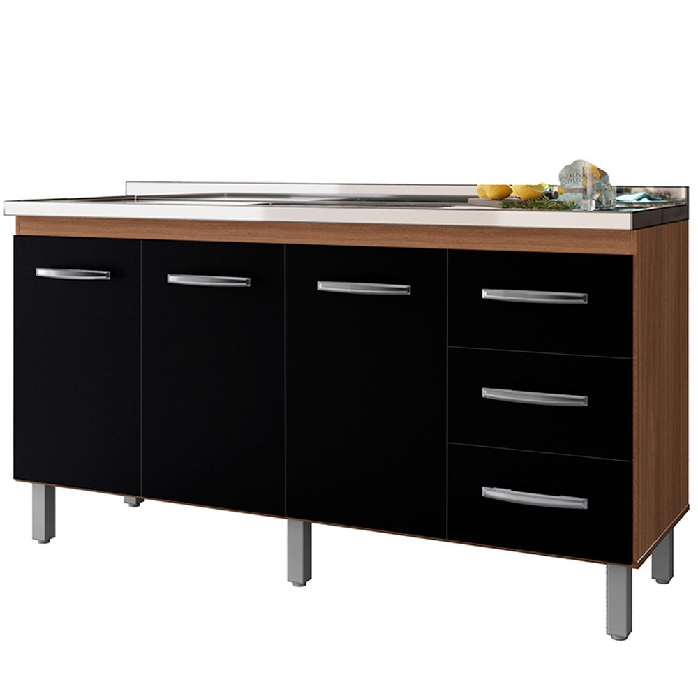 Balcao P/ Pia 160 Cm 3p Emily Savana Preto Mobbs Savana Preto