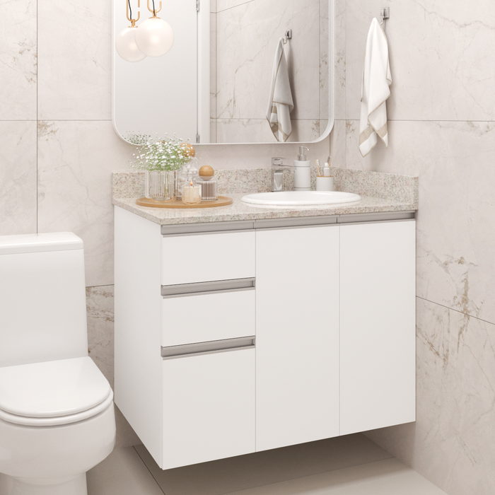 Balcão para Banheiro 100cm 2 Portas 3 Gavetas Suspenso sem Tampo Branco