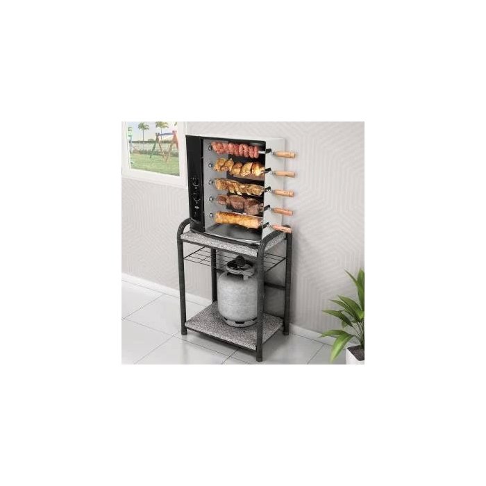 Balcão para Churrasqueira Fabone Buenos Aires. Características: Estrutura em aço carbono Tinta Epoxi Aquecida Cerca De 210º C Tratamento Do Tubo Por Fosfato De Zinco Ponteira De Polipropileno Capacidade de peso sobre o tampo 30 kg bem distribuídos Dimensões: Altura: 95 cm Largura: 65 cm Profundidade: 41 cm Peso: 19,800 kg Garantia do fornecedor de 3 meses.