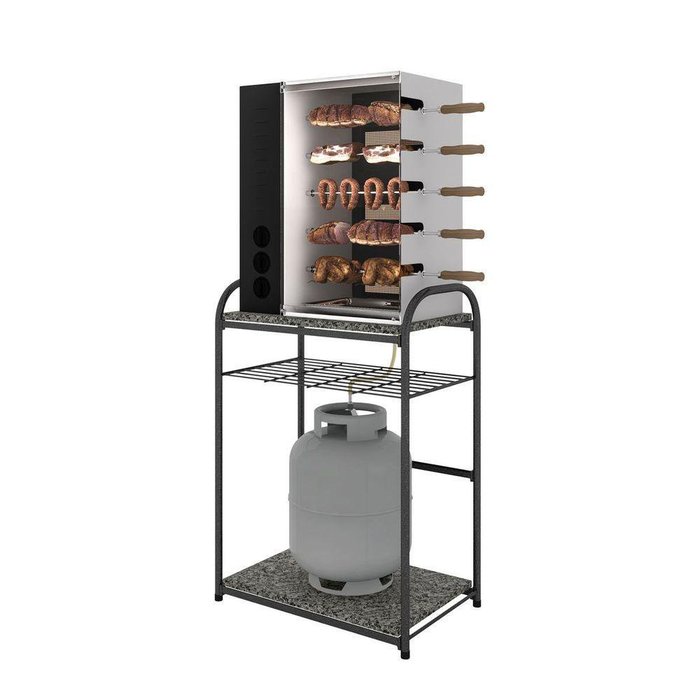 Balcão Buenos Aires Para Churrasqueira Preto Prata Com Tampo De Granito