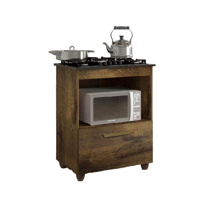 Balcão para Cooktop 4 Bocas 1 Porta Sálvia Kaiki Ipê