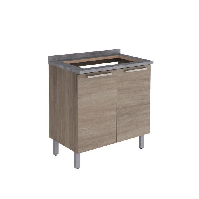 Balcão Itatiaia Fluence 80 cm, corpo em FF 15mm com filete em FF; Portas em FF 15mm com filete FF; Caixas em papelão revestidas com plástico termo retrátil; dobradiças em aço de 26mm; Puxadores em PS metalizados; Prateleiras em MDP 15 mm; Corpo em chapa MDP revestido em FF padrão madeirado; Portas em chapa MDP revestidas em FF com padrão madeirado.