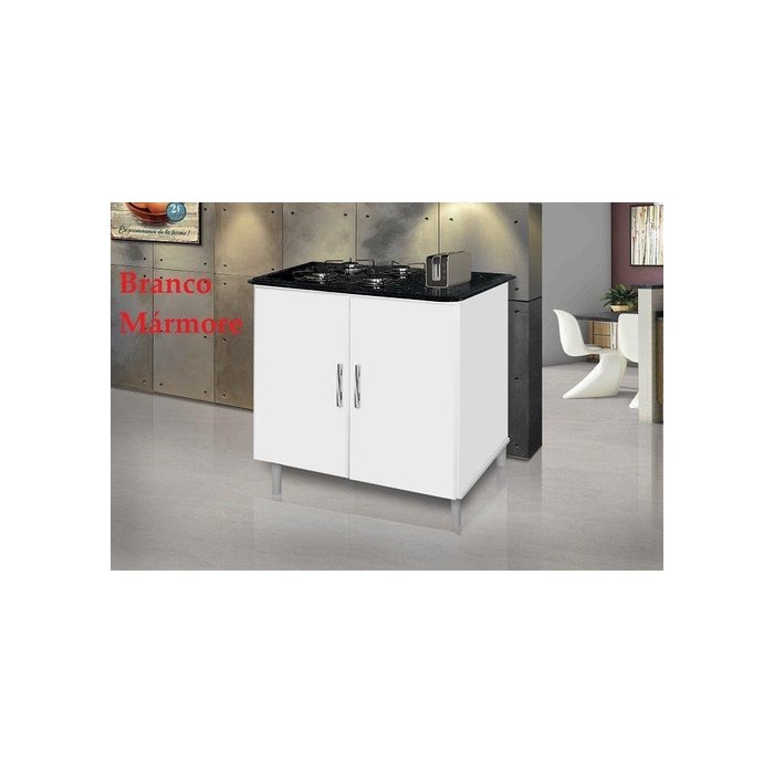 Balcao Para Cooktop De 4 Bocas 02 Portas Branco Marmorizado PASSE BEM