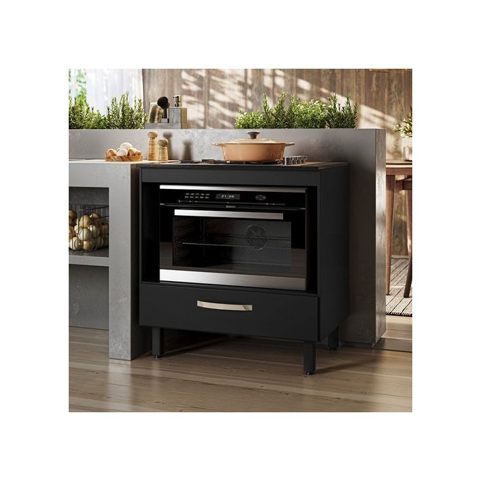 Balcão para Cooktop e Forno com 01 Gaveta Preto