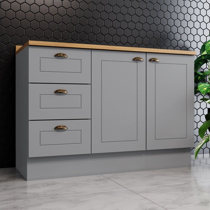 Balcão para Cozinha 3 Gavetas 2 Portas com Tampo Emily Cinza Nature