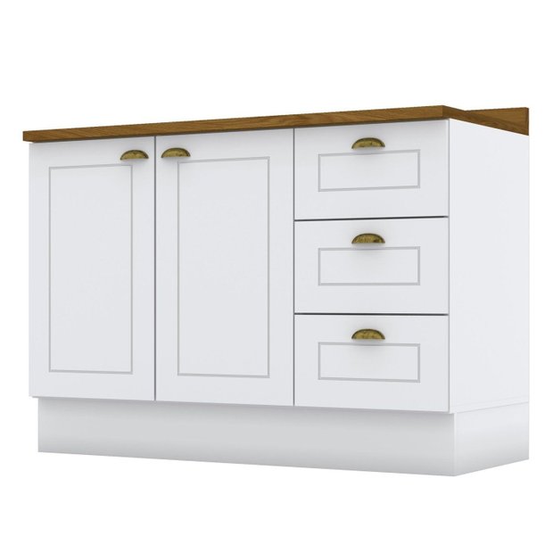 Balcão para Cozinha 3 Gavetas 2 Portas com Tampo Emily Branco HP/Nature