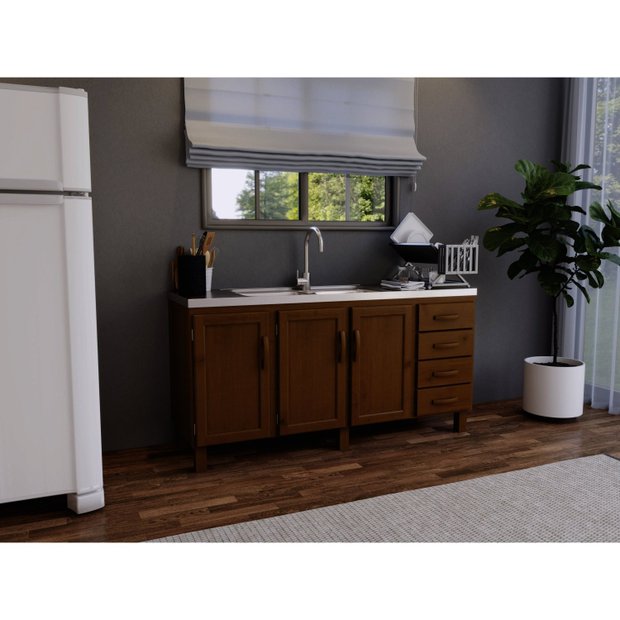 O Balcão para Cozinha 1600 Móveis MPO é ideal para quem quer beleza e resistência, produzido em madeira de Pinus que resulta em qualidade e durabilidade. Ideal para qualquer cozinha, inclusive para casa de campo. OBS: Cuba não inclusa.