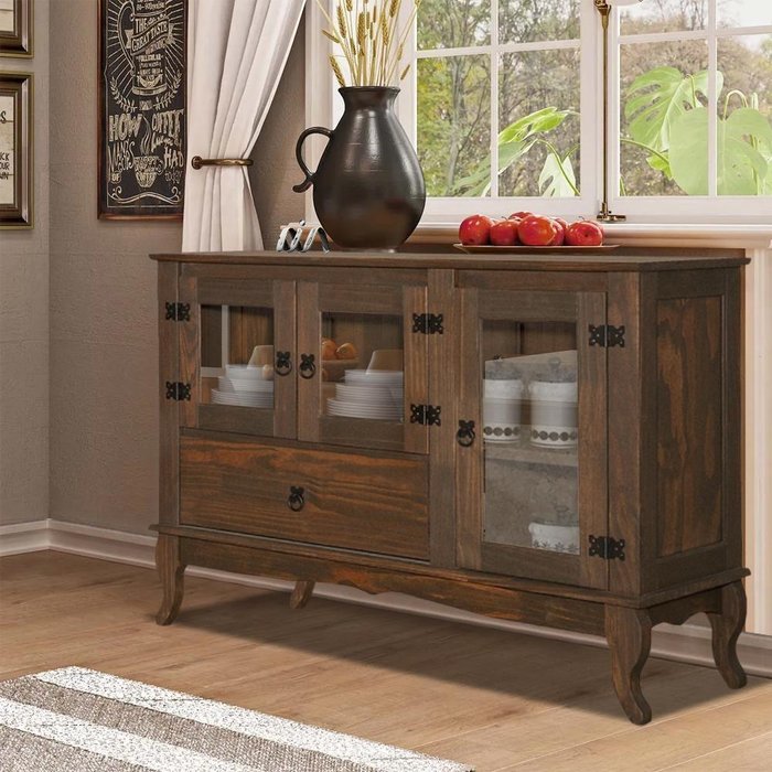 Balcão Para Cozinha 3 Portas Em Vidro Madeira Maciça Imbuia Kefi Shop Jm