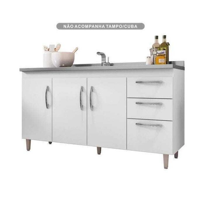 Balcão para Cuba ou Tampo 150cm 04 Portas 2 Gavetas Elisa - Ajl Móveis - Branco