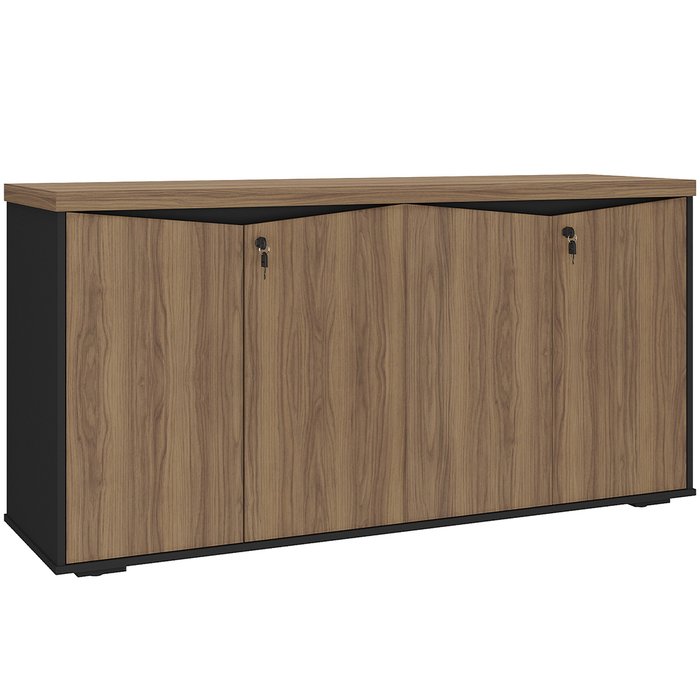 Balcão para Escritório 04 Portas 160cm com Chaves Unik A02 Nogal Preto - Lyam Decor