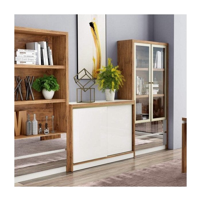 Balcão para Escritório 2 Portas de Correr 1 Prateleira 120cm Dalla Costa Nobre/Off White
