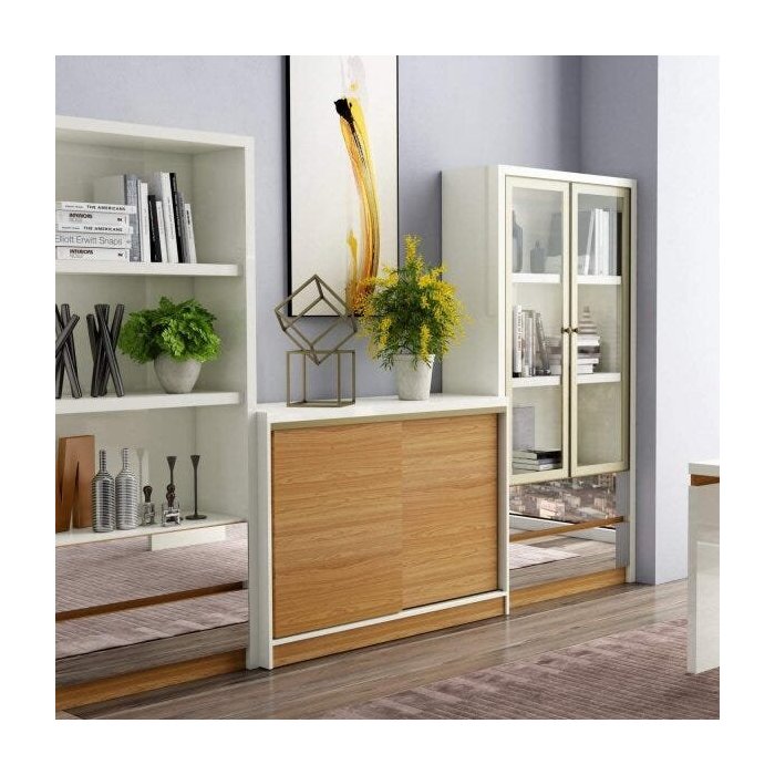 Balcão para Escritório 2 Portas de Correr 1 Prateleira 120cm Dalla Costa Off White/Freijó