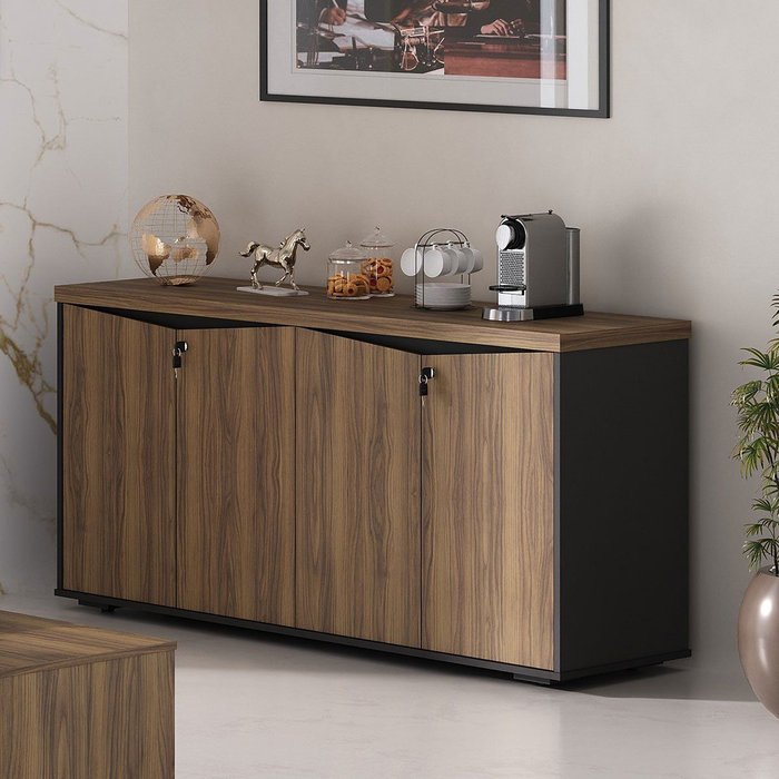 Balcão para Escritório 4 Portas com Chave 2 Prateleiras Nogal/preto Nogal/Preto