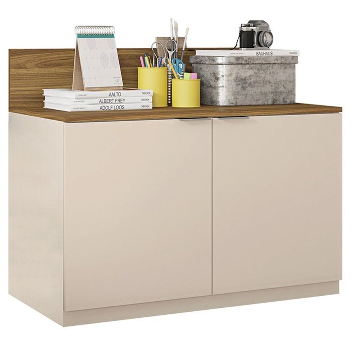 Balcão para Escritório Recta com 2 Portas e 1 Prateleira Lamina Mel / Off White