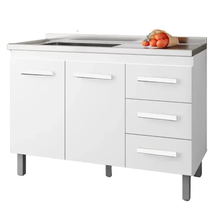 Balcão de pia: além de apoiar a pia, é utilizado para armazenar utensílios.