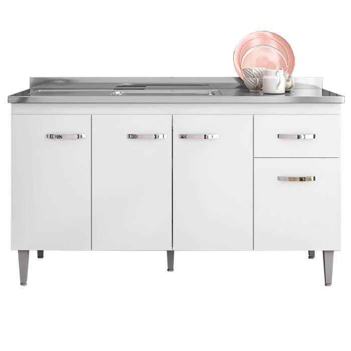 Balcao para Pia 145 cm 4 Portas Gabriela, é ideal para quem busca qualidade e sofisticação para compor sua cozinha da forma que desejar. Estrutura em MDP de 12 e 15 mm, acabamento com pintura UV. Composto por 4 portas articuladas com dobradiças metálicas, uma gaveta com corrediças metálicas e deslize suave, (gaveta possui opção de montagem flex, podendo ser montada na cor branco ou preto), espaço para colocação de pia (pia não inclusa), prateleira interna, puxadores em PVC, acompanham pés em PVC com regulagem de altura. Produzido com controle de qualidade e com excelente acabamento. Este móvel chegará na sua casa separado em 1 volume.