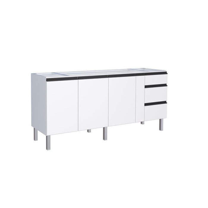 Balcão para Pia 200cm em Aço 2 Portas 3 Gavetas Gaia Branco