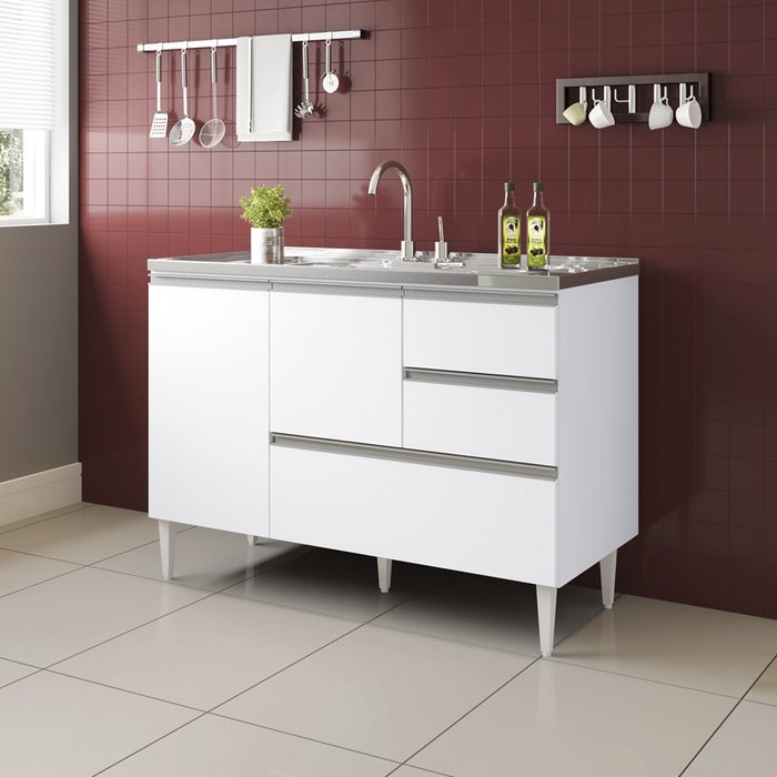 Balcão para Pia de 1,20 Mt Maceió com Gavetão Branco branco