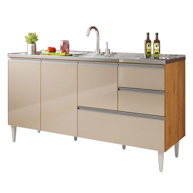 O Balcão para pia de 1,60 metro Maceió com gavetão, é fabricado em MDP de 15mm para maior durabilidade, pintura com acabamento uv Carvalho fosco e Off White Brilho. O Balcão para pia Maceió possui corrediças telescópicas nas gavetas e no gavetão, todas as portas possuem dobradiças metálicas. Moderno o Balcão para pia Maceió possui puxadores perfil aluminio em todas as portas, gavetas e gavetão. Com uma prateleira interna na porta menor. Pés de plástico com regulagem de altura para correção de possiveis desniveis. DimensõesAltura 83 cm Largura 157 cm para pia de 160 cm Profundidade 50 cm Sistema De MontagemParafusos, Cavilhas. Recomendação de LimpezaLimpar com pano seco e ou levemente umdecido. Não aplicar produtos quimicos.Este produto Não Acompanha Tampo ou Cuba para Pia. * Foto Ilustrativa.Não acompanhando objetos de enfeites e eletros;Ao receber o produto verifique as condições da embalagem, em caso de avaria entre em contato conosco para orientações;Confira as dimensões do produto e certifique-se de que passarão normalmente por supostos elevadores, portas, escadas ou corredores de sua moradia;Entregamos os produtos até a frente de sua moradia, ou seja, até sua porta se for casa ou portaria se for apartamento.A loja não disponibiliza o serviço de montagem, a montagem é de total responsabilidade do comprador.Recomendamos que a montagem seja feita por um profissional da área.
