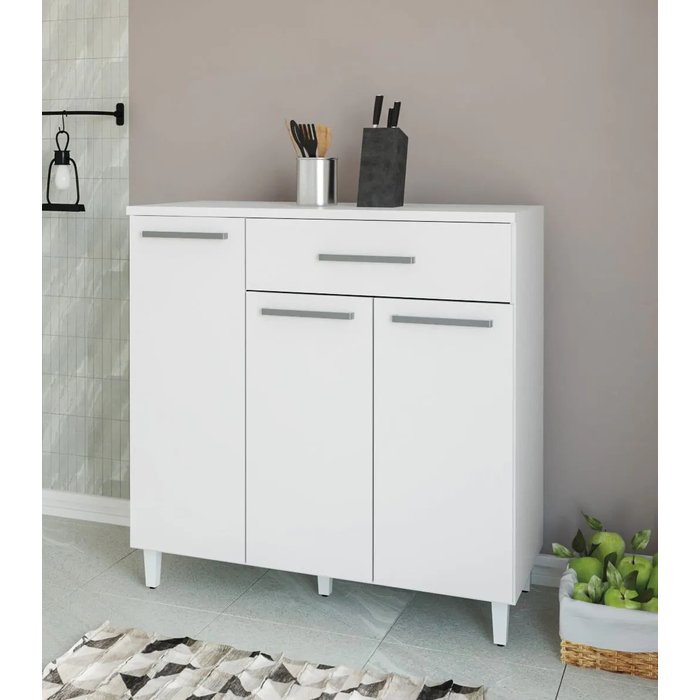 O Armário Balcão Multiuso com Tampo da Móveis Paraná possui belíssimo design e é compacto, se adaptando a qualquer ambiente, como cozinhas, copa, área gourmet e áreas de serviço. Ele possui 03 portas e 01 gaveta, além de seu amplo espaço interno com prateleiras e divisórias, sendo ótimo para organização de utensílios e mantimentos.