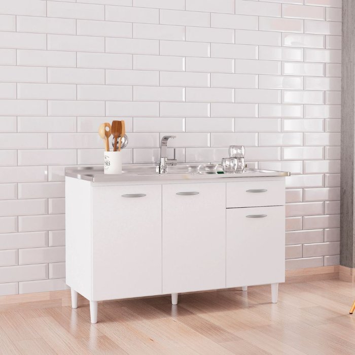 Balcão de pia: além de apoiar a pia, é utilizado para armazenar utensílios.