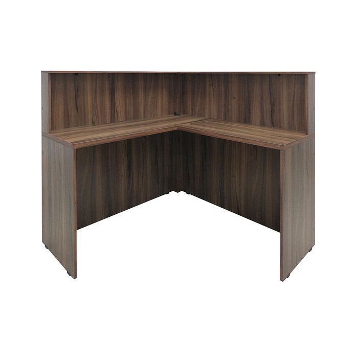 Balcão Recepção Atendimento em L com 1 passa fio no tampo Novo - SM Corporativo - 119AX120/120LX45P Nogueira com Preto