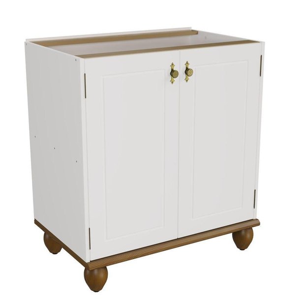 Características principais: -Base e tampo de madeira maciça Pinus Taeda reflorestada, com espessura de 25mm; -Pintura atóxica; -Puxadores padrão textura ouro envelhecido; -Pés robustos e torneados de madeira maciça de Pinus Taeda com nivelador. -Frente de portas e gavetas com detalhe de linha baixo relevo. -Estrutura painéis fibra de madeira (MDF 15mm).